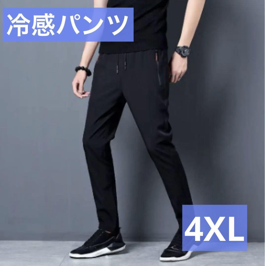 - 【ブラック/4XL】冷感パンツ 接触冷感 スポーツ ストレッチ ユニセックス