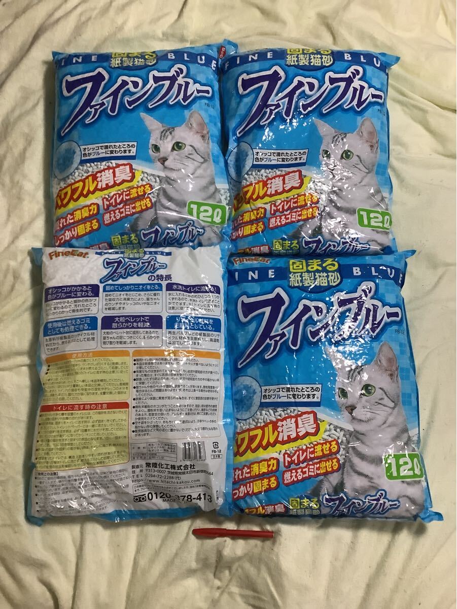 - 在庫一掃値下 猫砂 猫の砂 紙製猫砂 ファインブルー 12L 4袋 仕入除500円超10%オマケ 送料負担別1-2-3-4出品 (4か3袋お得) 120