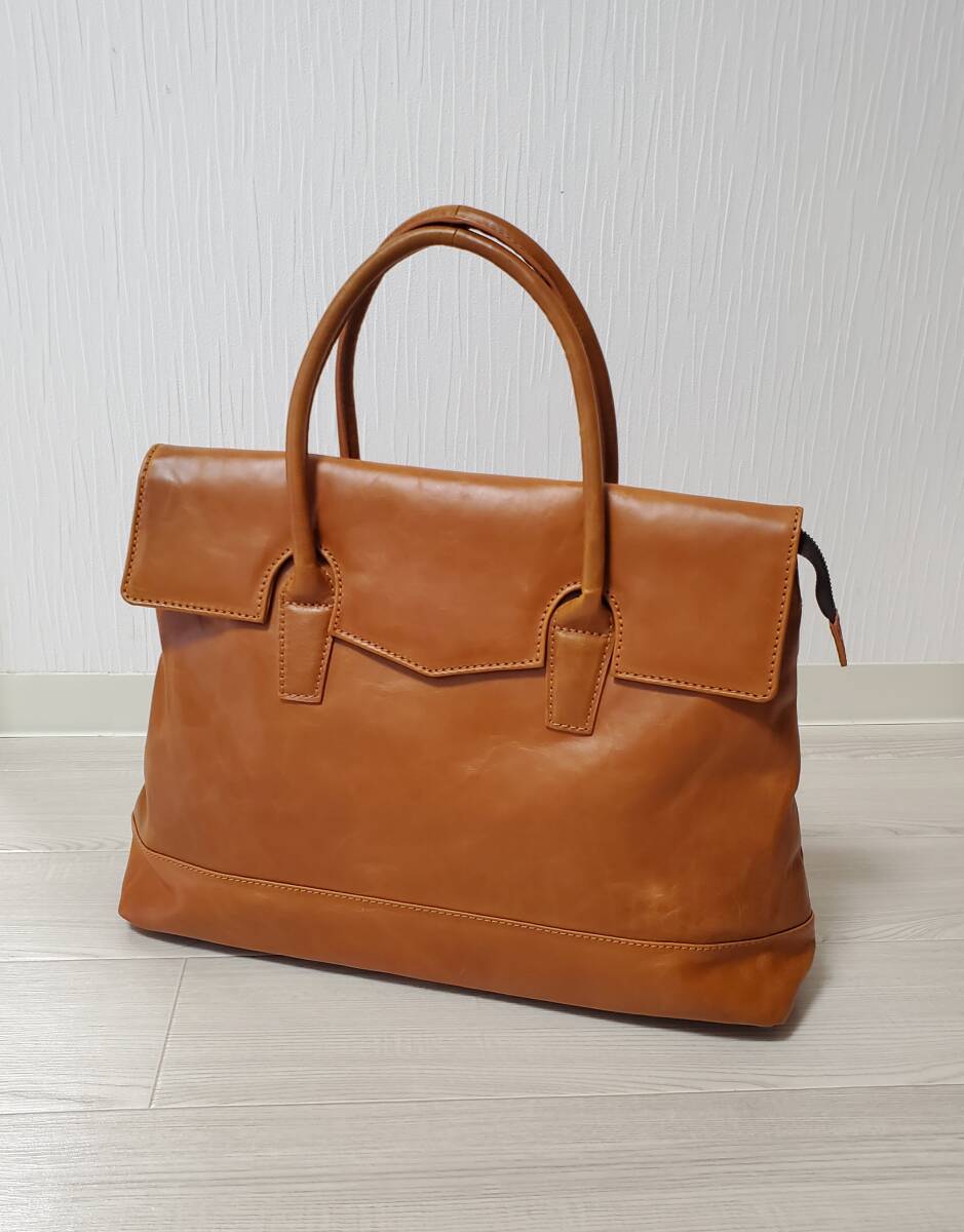 - 中古 美品 BICASH ビカーシ ビジネスバッグ ブリーフケース トートバッグ メンズ 2way 牛革 本革 レザー A4 カジュアル キャメル ブラウン