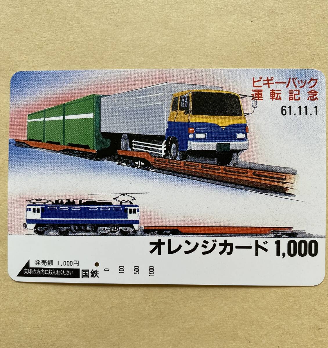 - 【使用済】 オレンジカード 国鉄 ピギーバック運転記念 61.11.1