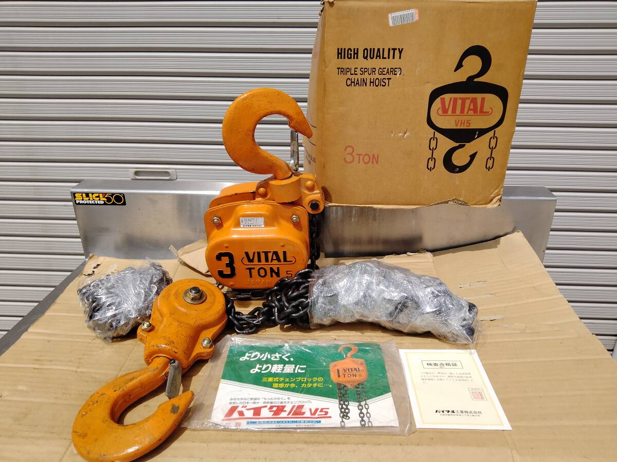 - 【新品未使用】 3t 大型 バイタル工業 チェーンブロック 揚程3mロング VH5 荷役 クレーン ホイスト