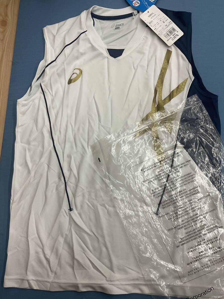 - O アシックス XS 601 L ホワイト × ブルーネイビー 大きいサイズ シャツ 入手困難 送料無料 ☆ 現品限り 早い者勝ち ☆