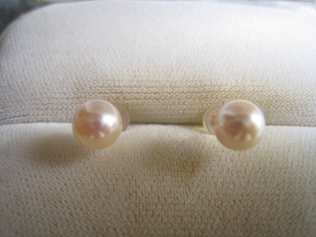 - [SAMU]綺麗!!照り抜群 天然あこや真珠6.2mmx2粒 k18金ピアス 新品!