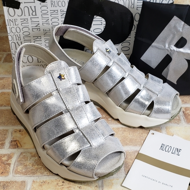 > 未使用 ルコライン RUCO LINE グルカ スポーツサンダル 37 シルバー 厚底 ビジュー R-EVOLVE 4050 ECLISSE ARGENTO