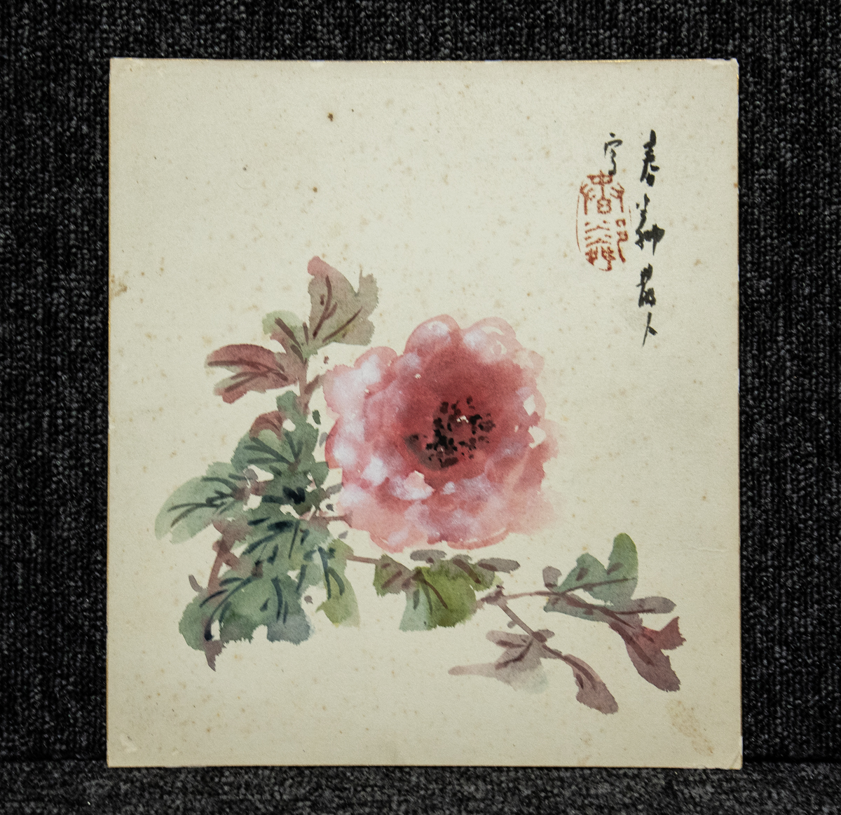 - 色紙ー1757 鷲見春鄰 牡丹 四条派の画家 名古屋 鷲見春岳の三男 名は広治【真作】