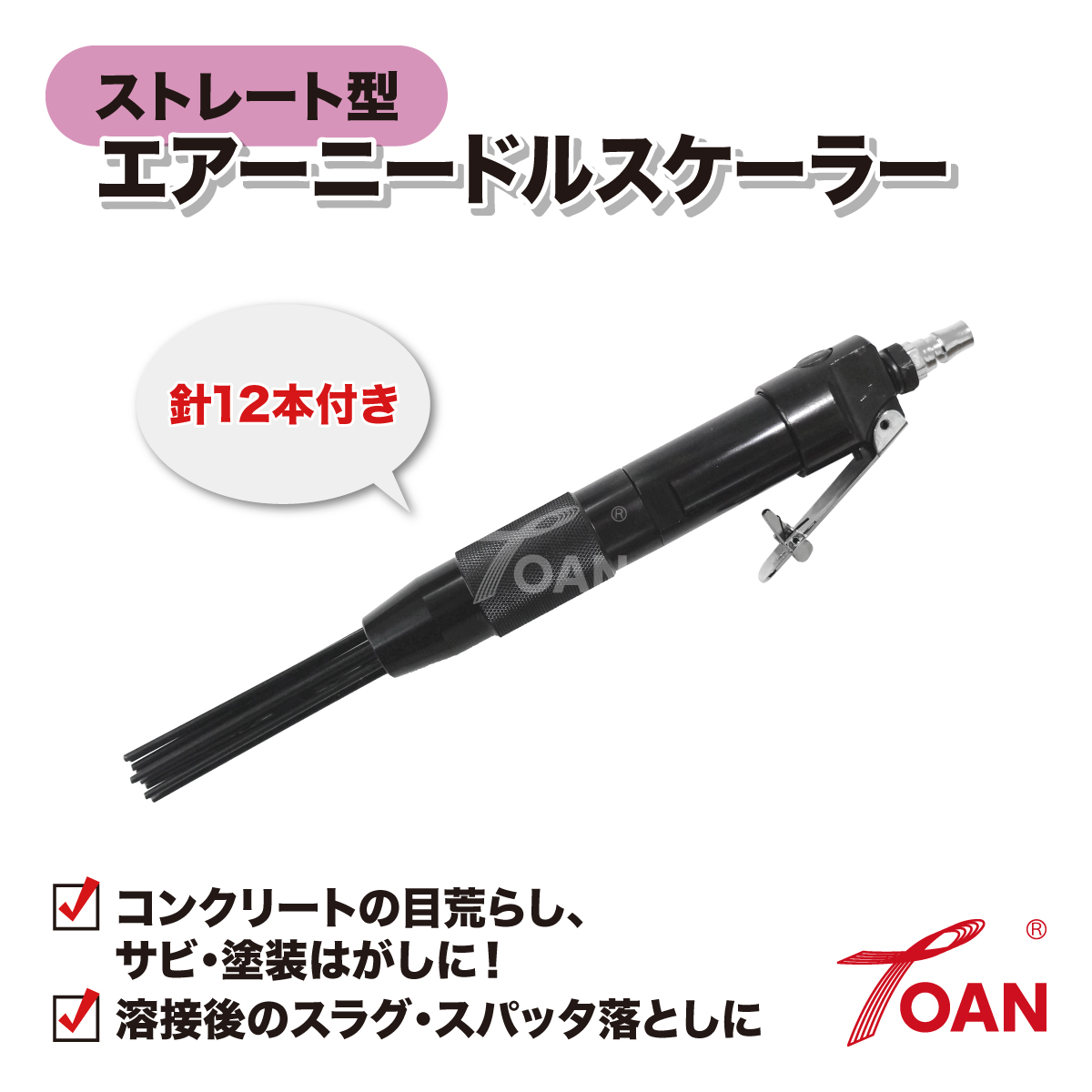 > エアーニードルスケーラー ストレート型 針12本付き 小型軽量タイプ ( 錆除去 ニードルスラグ バリ取り ライトニードル 空気式はくり工具 )