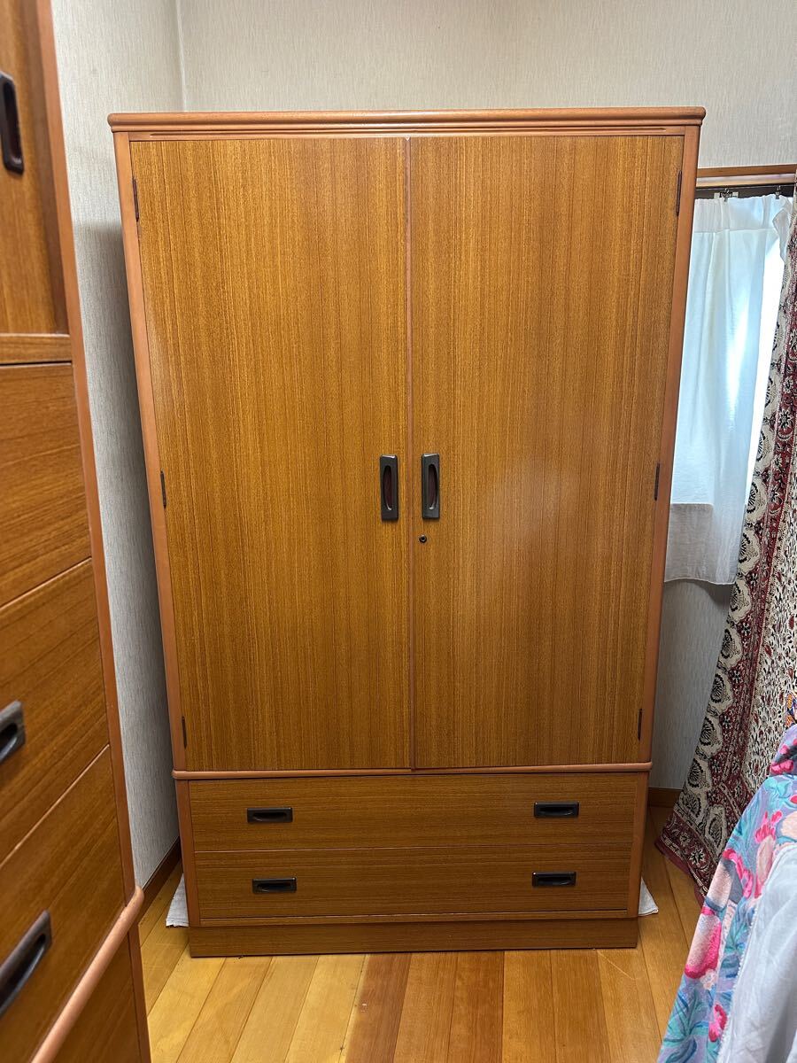 - 直接引取希望 東京 古い ハンガー付 洋服箪笥 2段引出し 観音開き 鍵なし 、 タンス ワードローブ キャビネット チェスト レトロ 骨董 昭和