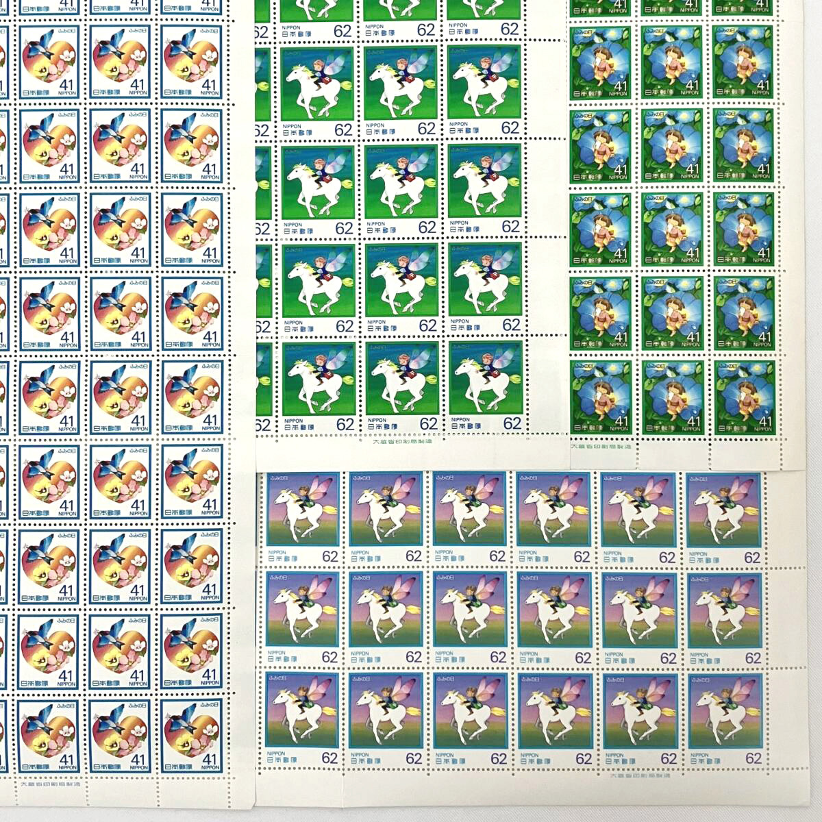 > 【4種セット】ふみの日 切手 41円 62円 100枚 50枚シート 1990年 はばたく想い 夢の草原 1991年 あさがおだより 虹色の地平線 美品