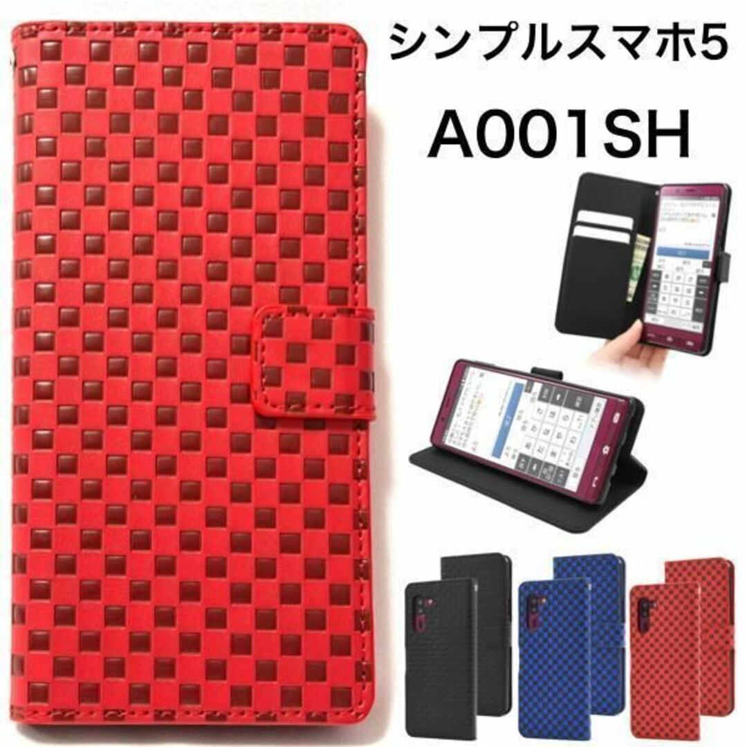 > シンプルスマホ5 A001SH チェック柄 手帳型ケース/スマホケース