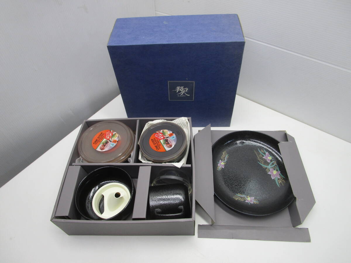 - O976★翠泉 SUISEN 天目アヤメ 大皿付ストッカーセット 陶器 保存容器 タッパー★未使用品