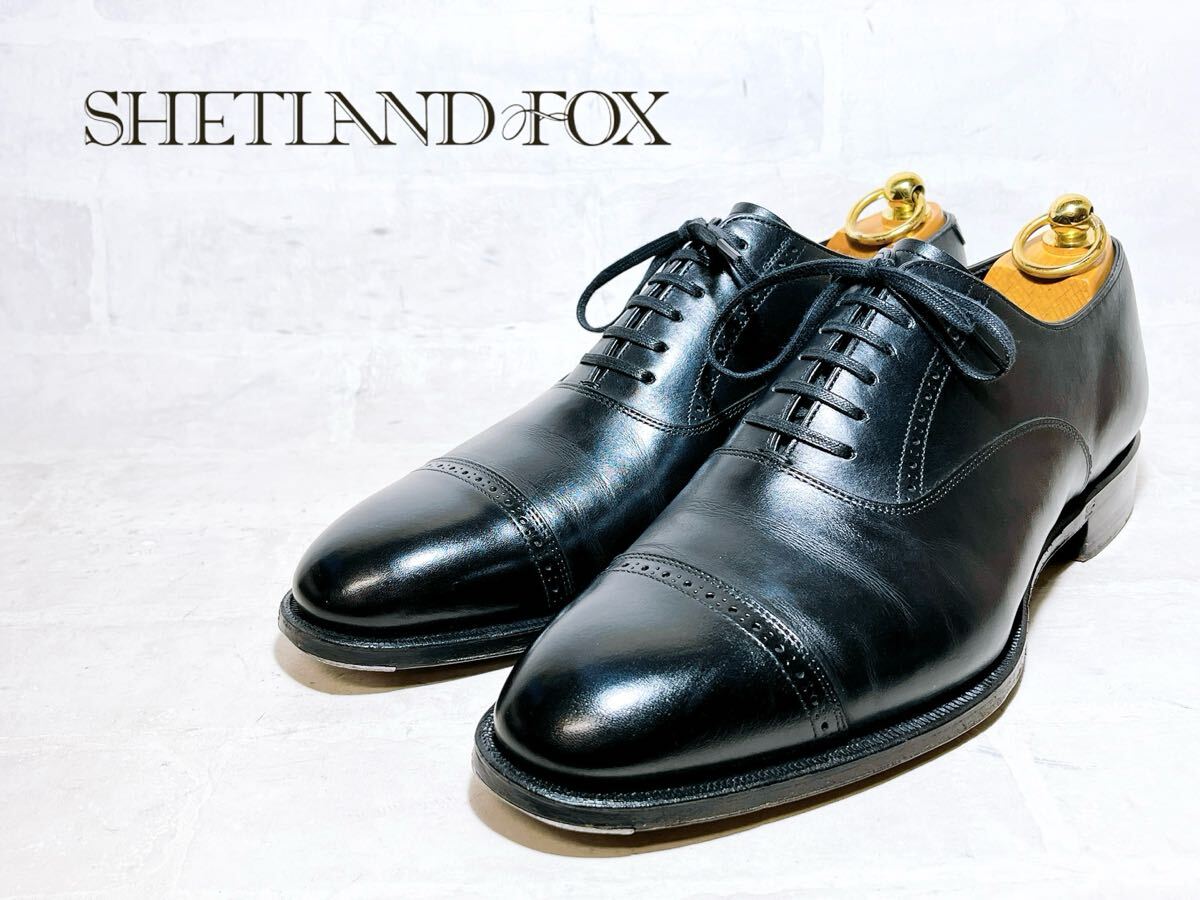 - 【美品】SHETLAND FOX シェットランドフォックス 高級 ストレートチップ ビジネスシューズ 本革 レザー 黒 UK7(約25.5cm)メンズ