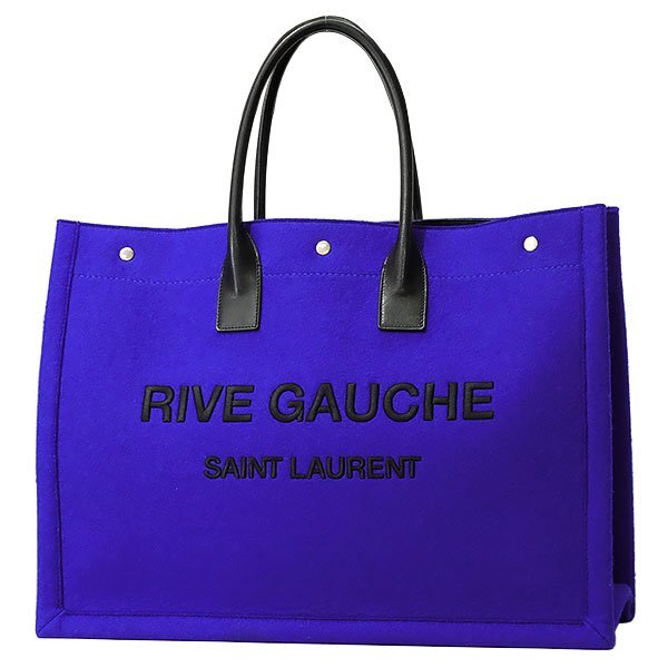 - 送料無料 本物 人気 SAINTLAURENT サンローラン リヴ・ゴーシュ ブルー×ブラック ウール×レザー トート 509415 ユニセックス フェルト