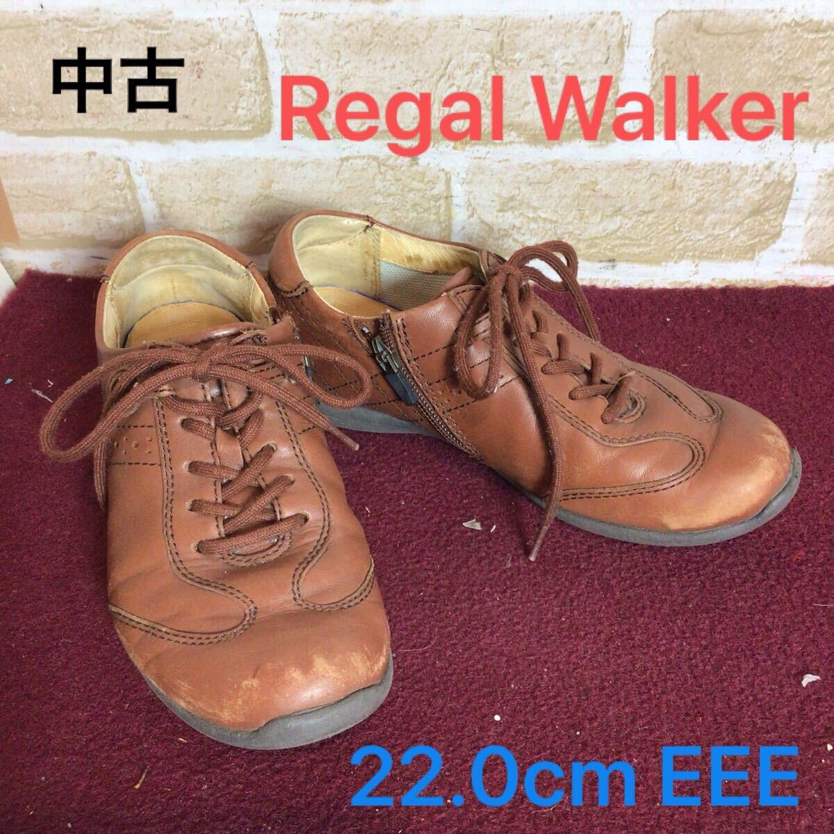 > 【売り切り!送料無料!】A-345 Regal Walker!サイドジップスニーカー!ブラウン!22.0cm EEE!おしゃれ!中古!