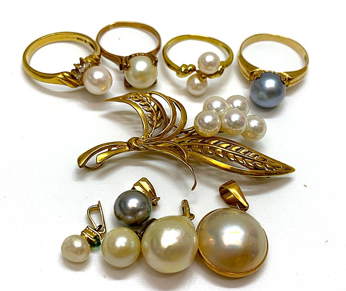 - 【送料無料】K18 パール 指輪 4点 /トップ5点 /ブローチ 1点 計10点セット18金 アクセサリー まとめ売り 総重量約 22.9g 店舗受取り可