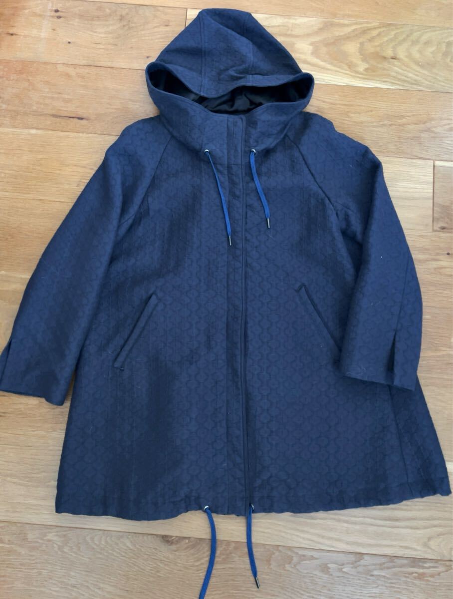 > 美品 CORNELIANI コルネリアーニ ★ 上質生地 フード付き フレア コート 01 ネイビー 紺 スプリングコート イタリア製 着1 サークル織り