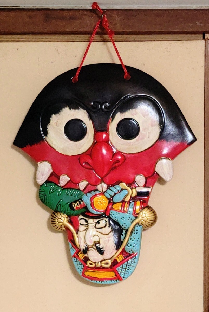 - アンティーク 陶器製 焼き物 レトロ 魔除 開運 縁起物 平戸鬼洋蝶 壁掛け 凧絵 商売繁盛