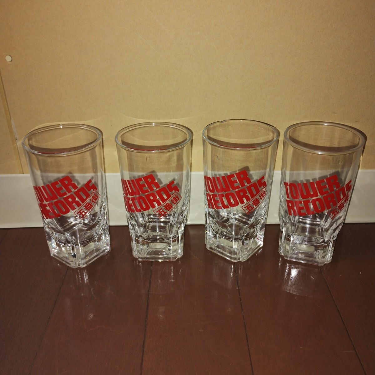 - タワーレコード「五番街」ロゴ入り ガラスコップ4個 札幌1980年代