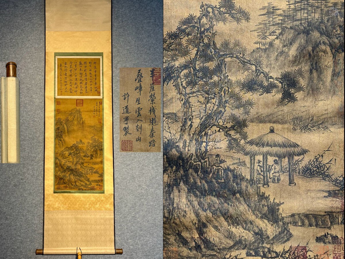 - 中国書画「北宋 許道寧 山水人物図」肉筆紙本 掛け軸 墨寶妙品 書画立軸 巻き物 古美術 旧蔵出