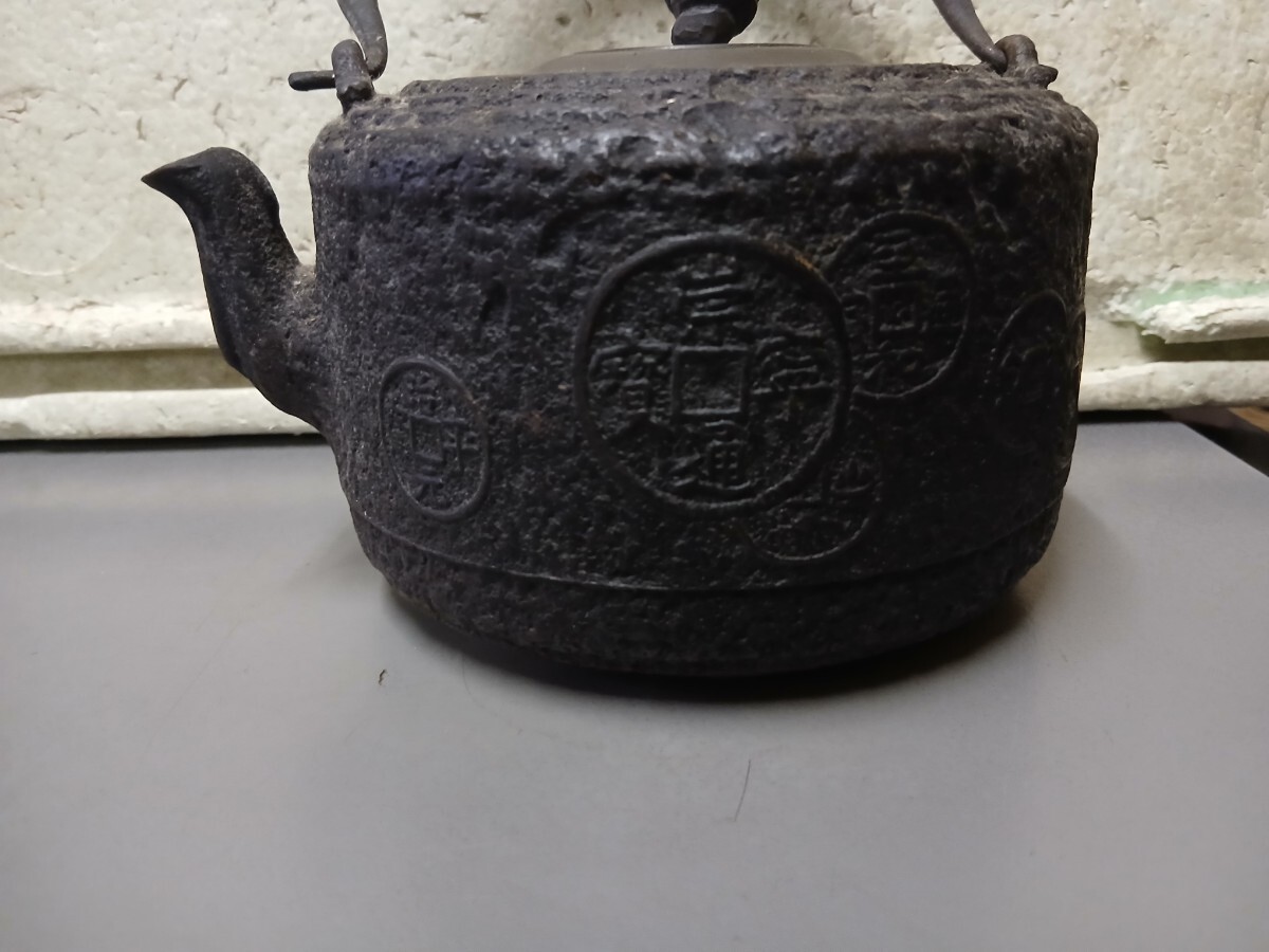 - 鉄瓶 アンティーク 古い 直系17センチ 銅蓋 鉄器