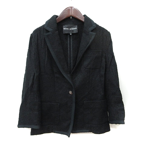 > ボナジョルナータ BUONA GIORNATA テーラードジャケット ツイード 麻混 リネン混 M 黒 ブラック /YI レディース