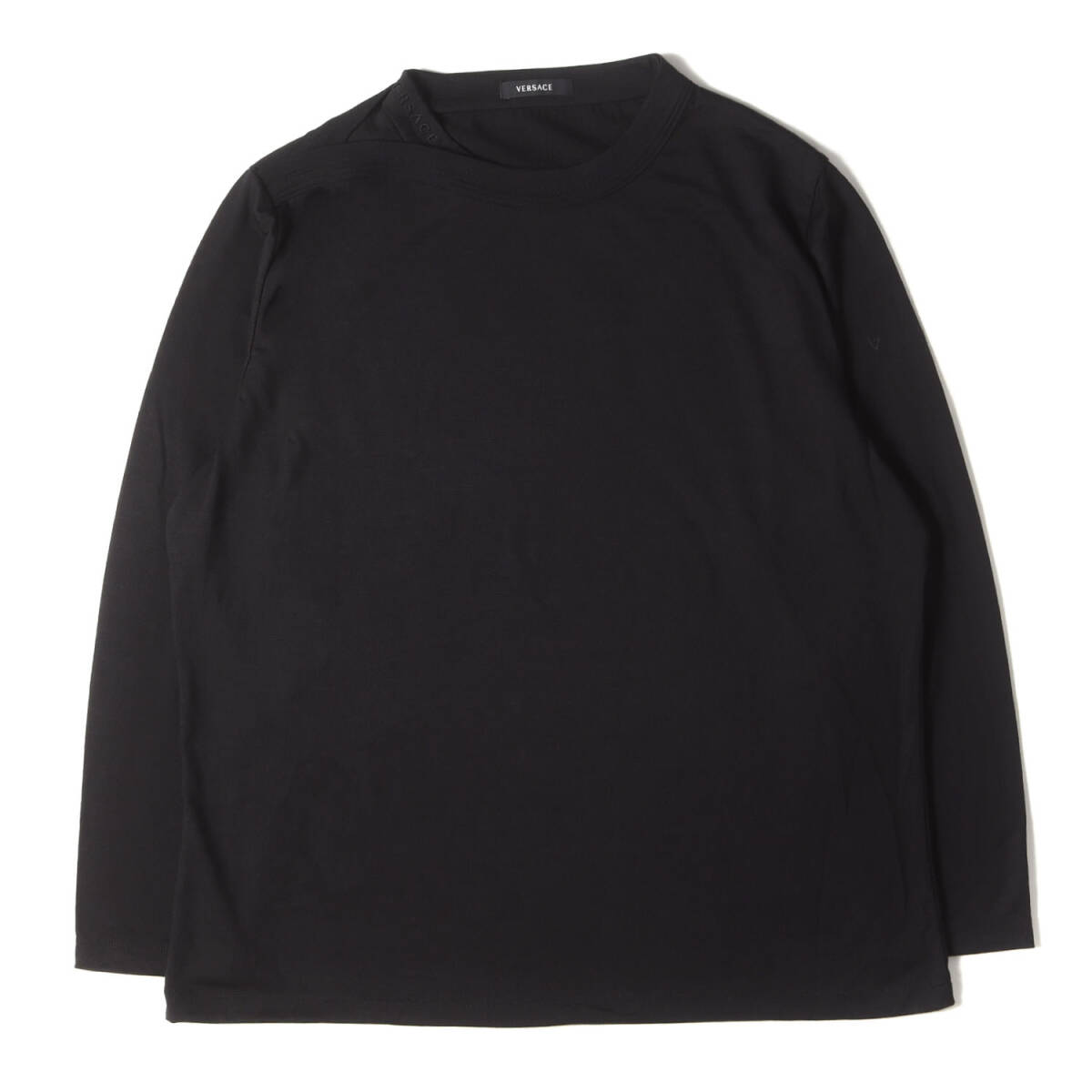- 【美品】VERSACE ヴェルサーチ カットソー サイズ:56 / ネックブランドロゴ刺繍 ウール/シルク レイヤードネック カットソー / ブラック