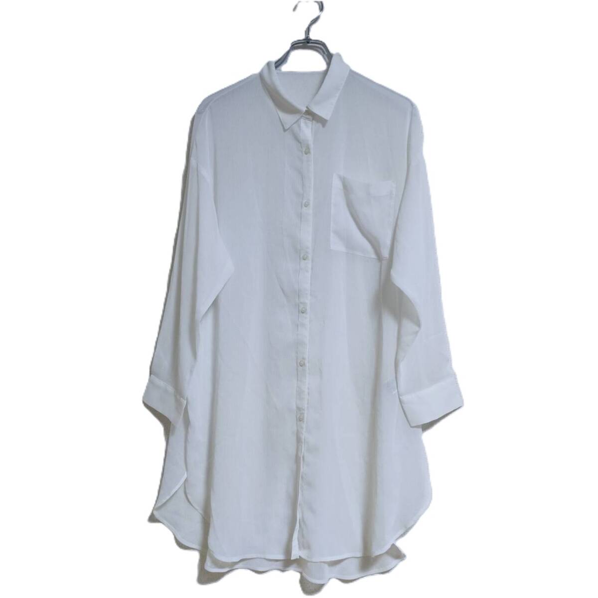 - GU 長袖シャツ シアー素材 ロング丈 ホワイト ポリエステル S 春夏 羽織り