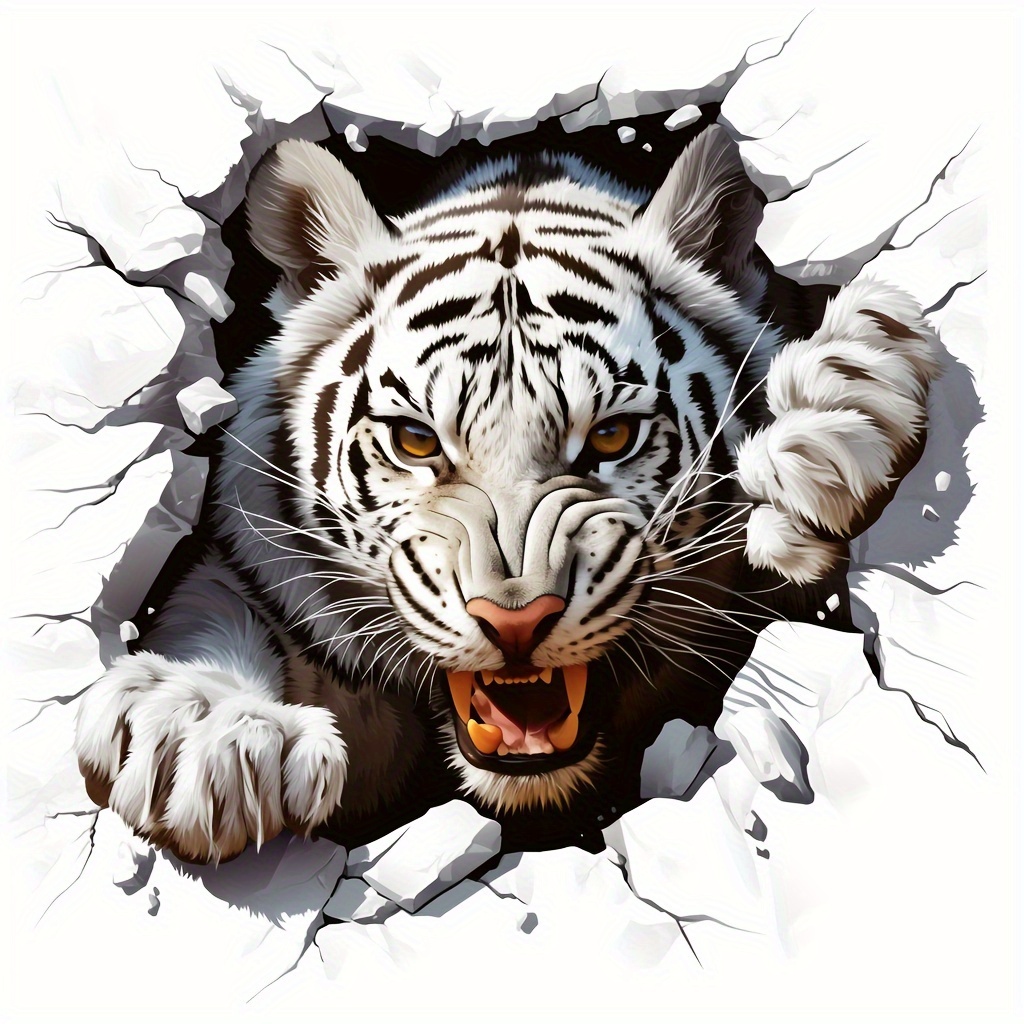 - ステッカー 壁穴から覗くトラ ホワイトタイガー ノートパソコン 13cm 怒った虎 車用 窓用 防水 ビニール素材 シール アニマル 動物 t6418