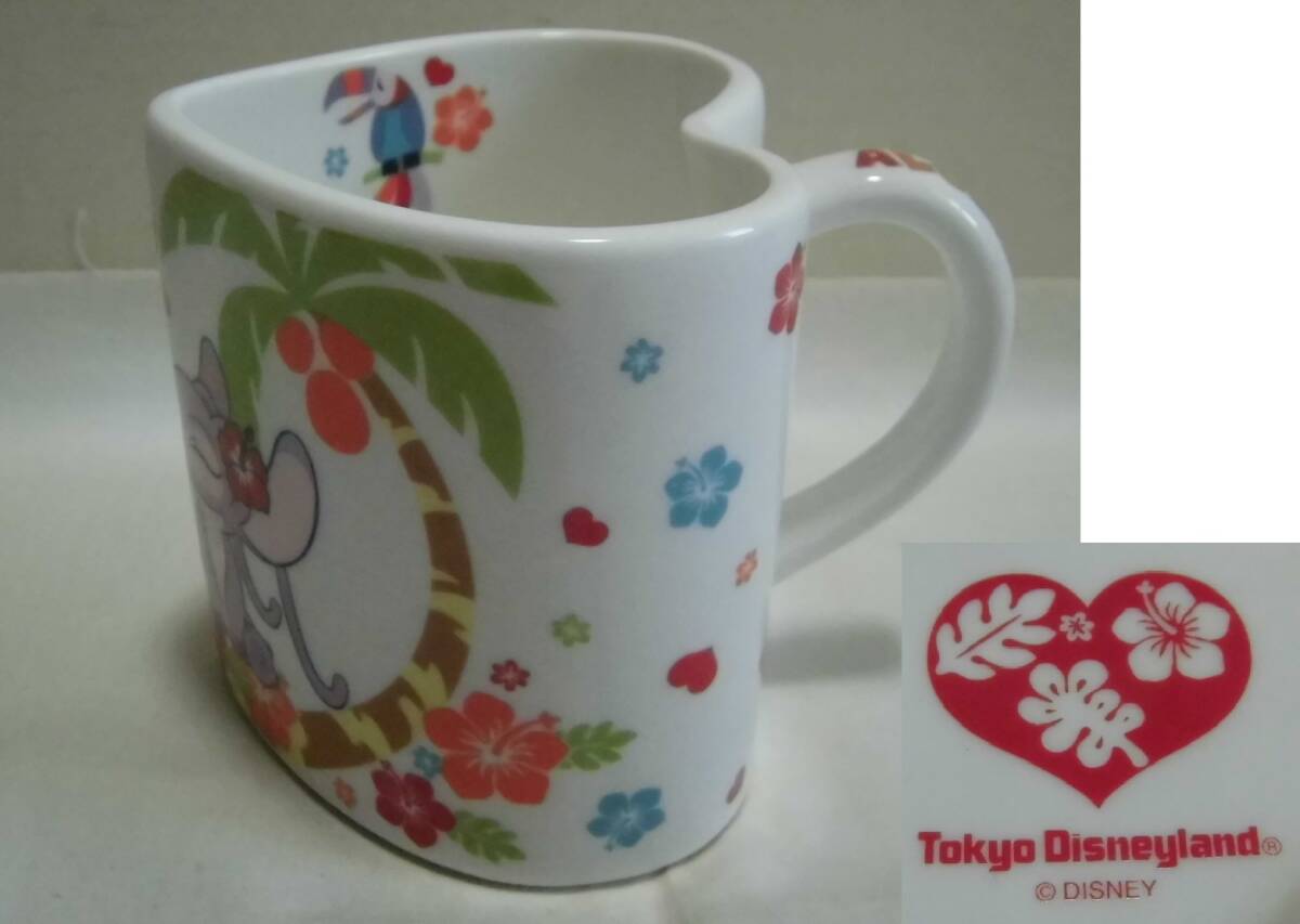 - マグカップ ハート形 東京ディズニーランド スティッチ柄 色絵 フリーカップ 茶器 陶器 工芸品 レトロ