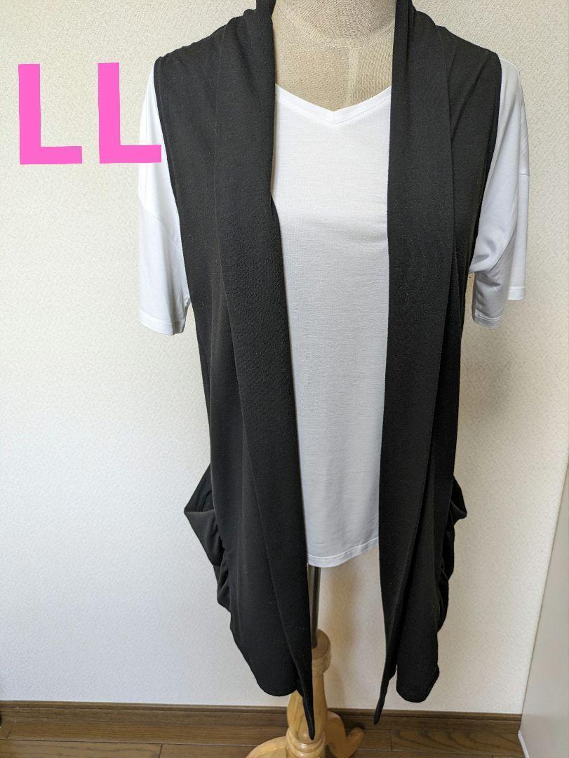 - レディース ジレ べスト 黒 LL 体型カバー