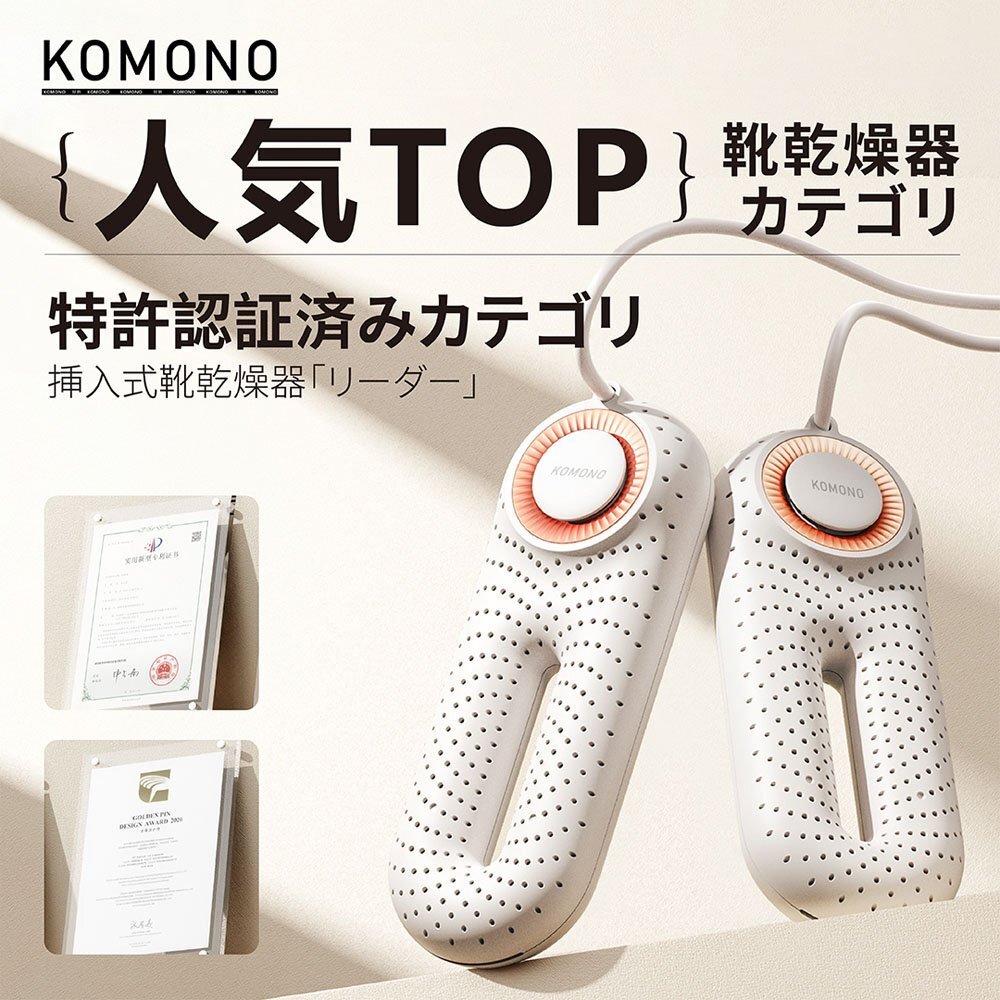 - KOMONO 電気乾燥機 梅雨対策脱臭 除湿 温熱 シューズ乾燥機 脱臭乾燥機 殺菌 消臭 シューズ乾燥機 静か 小型 軽量 タイマー 靴の乾燥機