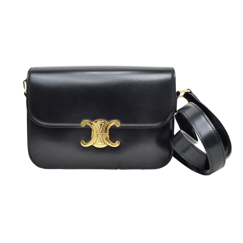 > 【名東】セリーヌ トリオンフ クラシックショルダーバッグ ブラック ゴールド金具 187363 シャイニーカーフスキン レディース その他