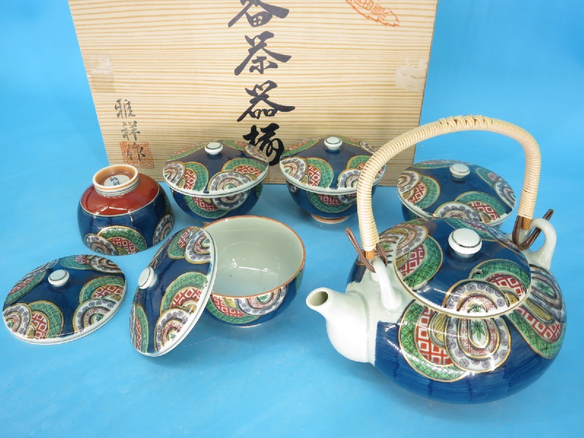 - 有田焼 雅祥 作 番茶茶器 茶器 急須 湯呑 蓋付 竹取 共箱入り 茶道具 中古 現状品 梱包方法B (中 AGH14