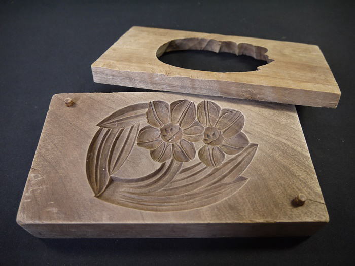 - 【ナ】送料込 アンティーク 木製菓子型 「水仙」 菓子の木型 お干菓子 落雁 インテリアにも