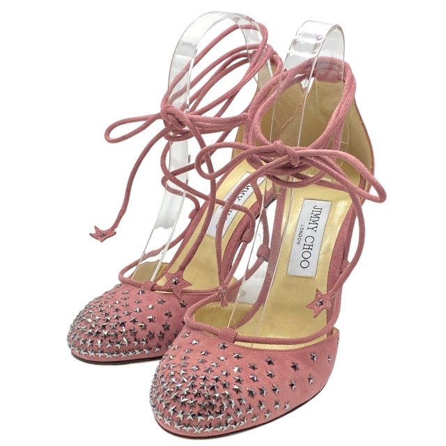 - 【未使用】JIMMY CHOO ジミーチュウ パンプス ヒール シューズ レースアップ スタースタッズ スエード ピンク [サイズ 38 1/2 (約25.5cm)]