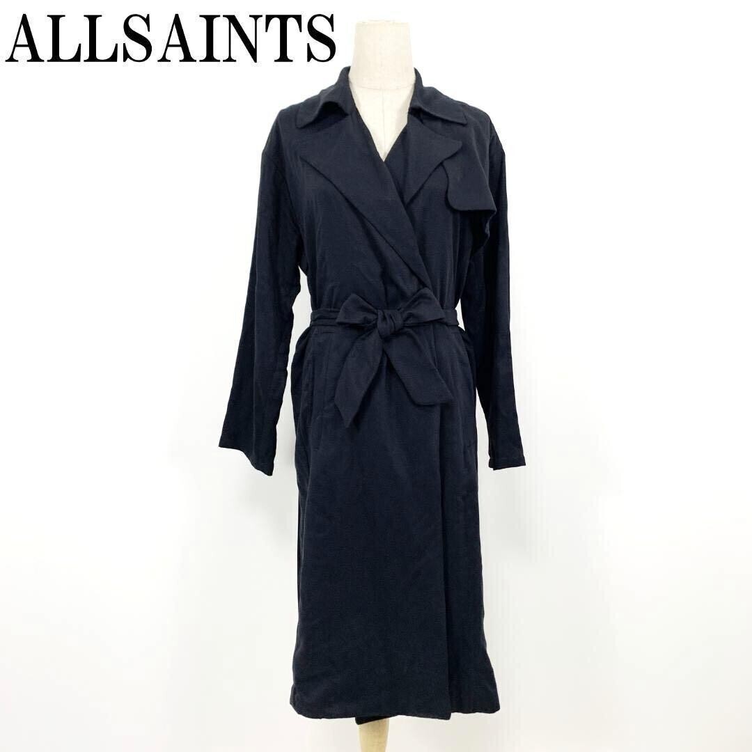 - LA5900 オールセインツ ロングトレンチコート ALLSAINTS カジュアル ベルト付き 留め具無し 深スリットブラック XS