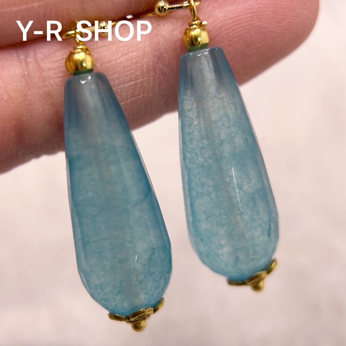 > 天然石★雫型アクアマリンのアンティーク調ピアス★レディースゴールドアクセサリーカラーストーンエスニックアジアン雑貨新品宝石Y-R SHOP