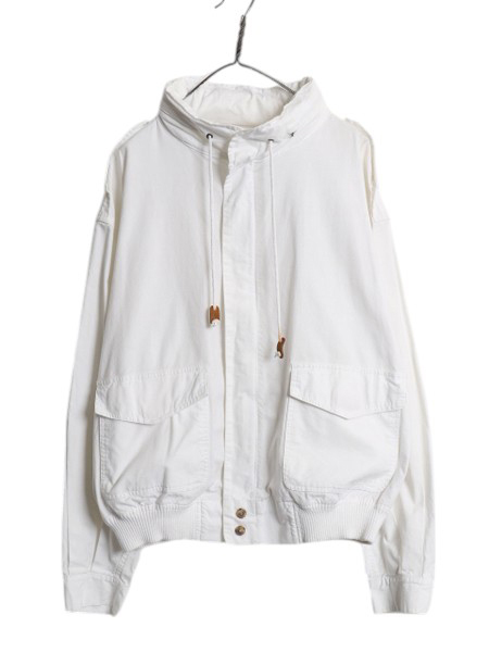 - 80s バナナリパブリック A-2 タイプ コットン フライト ジャケット メンズ L 古着 ヴィンテージ ブルゾン マリン スモッグ 収納 フード 白