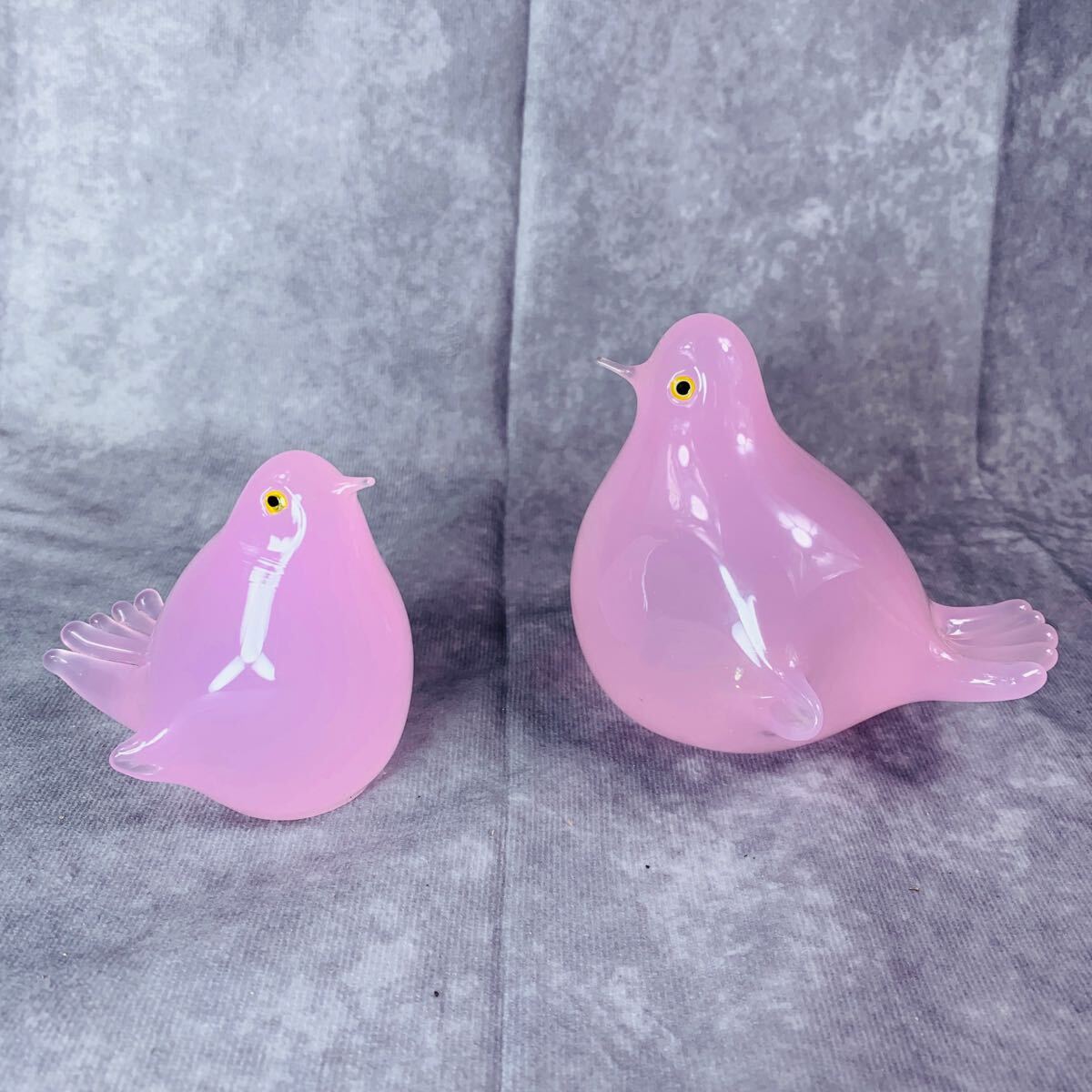 - ガラス細工 ガラス工芸 置物 鳥 バード ピンク 硝子 2羽 インテリア