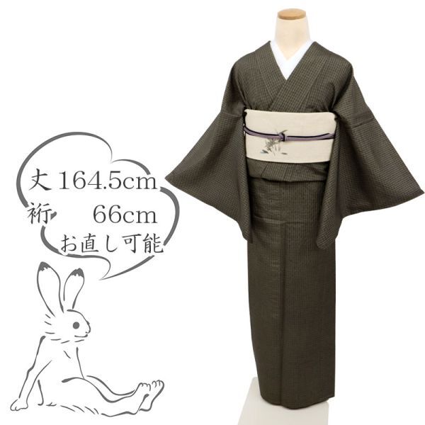 > 【紬】 単衣 長尺 赤城紬 手座繰り 青柳謹製 格子縞 灰茶 正絹着物 レディ―ス TG4-2