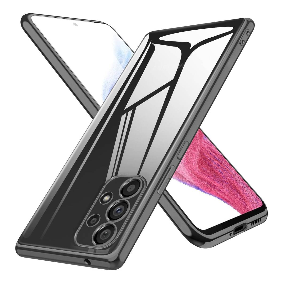 - 【特価商品】背面クリア ギャラクシーA53 黒 薄型 ソフト ストラップホール付き 透明 スマホケース 軽 SCG15 SC-53