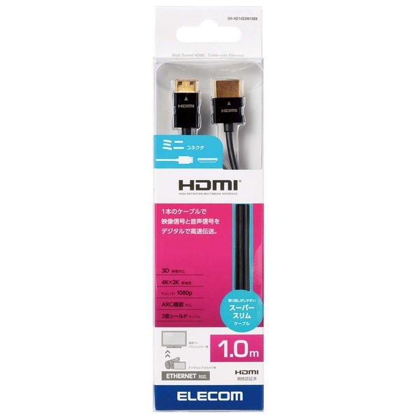- HIGH SPEED HDMIケーブル(A-C) 1.0m スーパースリムタイプ ケーブル直径約3.2mmで取り回しがしやすく、すっきり配線可能: DH-HD14SSM10BK