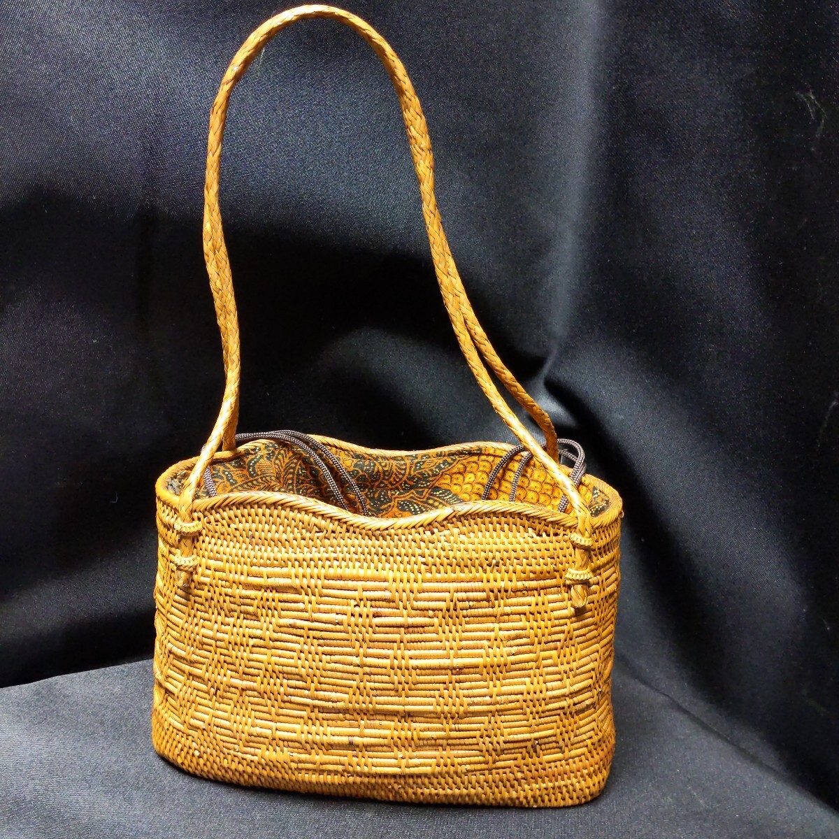 - 496 天然素材竹のバスケット 竹編カゴバッグ ハンドバッグ バッグ 茶色 23×13×39cm (取っ手まで) カゴ部高さ 16cm