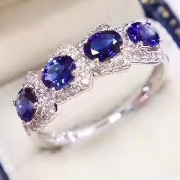女性のためのナチュラル サファイアリング、925 スターリングシルバー、上質な手作りジュエリー指輪
