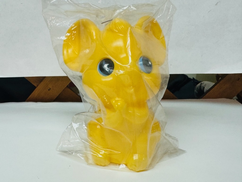 - レア 貴重 昭和レトロ デットストック そらちしんきん 干支 ネズミ 置物 フィギュア ソフビ 貯金箱 黄色 未開封品です