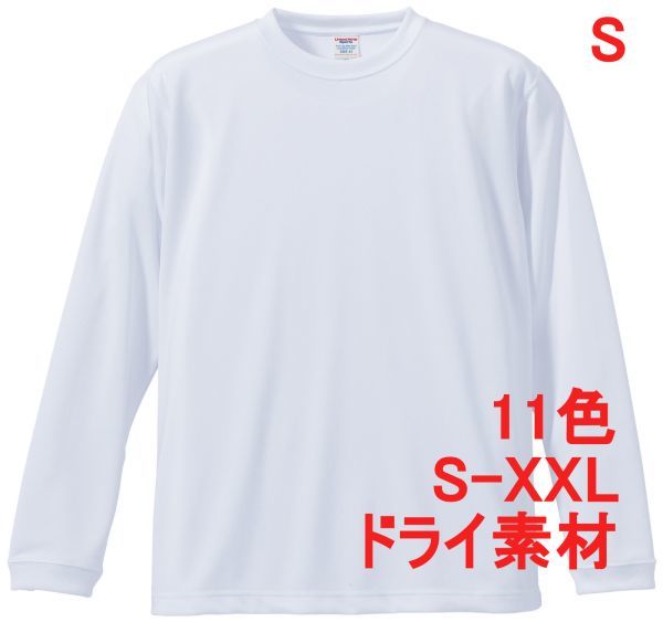 - 長袖 Tシャツ S ホワイト ドライ素材 吸水 速乾 無地 袖リブ ロンT ドライ 無地T 長袖Tシャツ A516 白 白色 508901 5089 5089-01