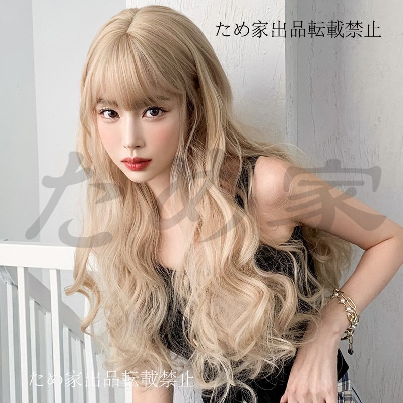 - 新品人毛 ナチュラルロングカールウィッグ 浅めブロンド おしゃれスタイル つむじ部分手植え 自然に見えますフルウィッグ