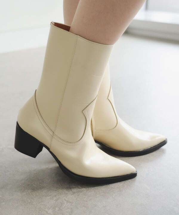 - 新品未使用タグ付き Ray BEAMS レイビームス 艶のあるレザー素材のウエスタンブーツ ポインテッドトゥでやや細身 オフホワイト39(24.5程度)