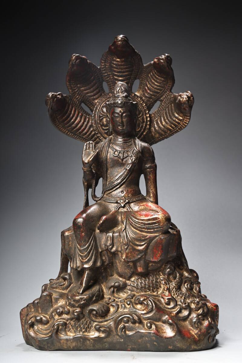 - ▽鴻▽ 銅製 泥金 龍樹菩薩像 仏教古美術 供養品 古賞物 中国古玩 中国古美術