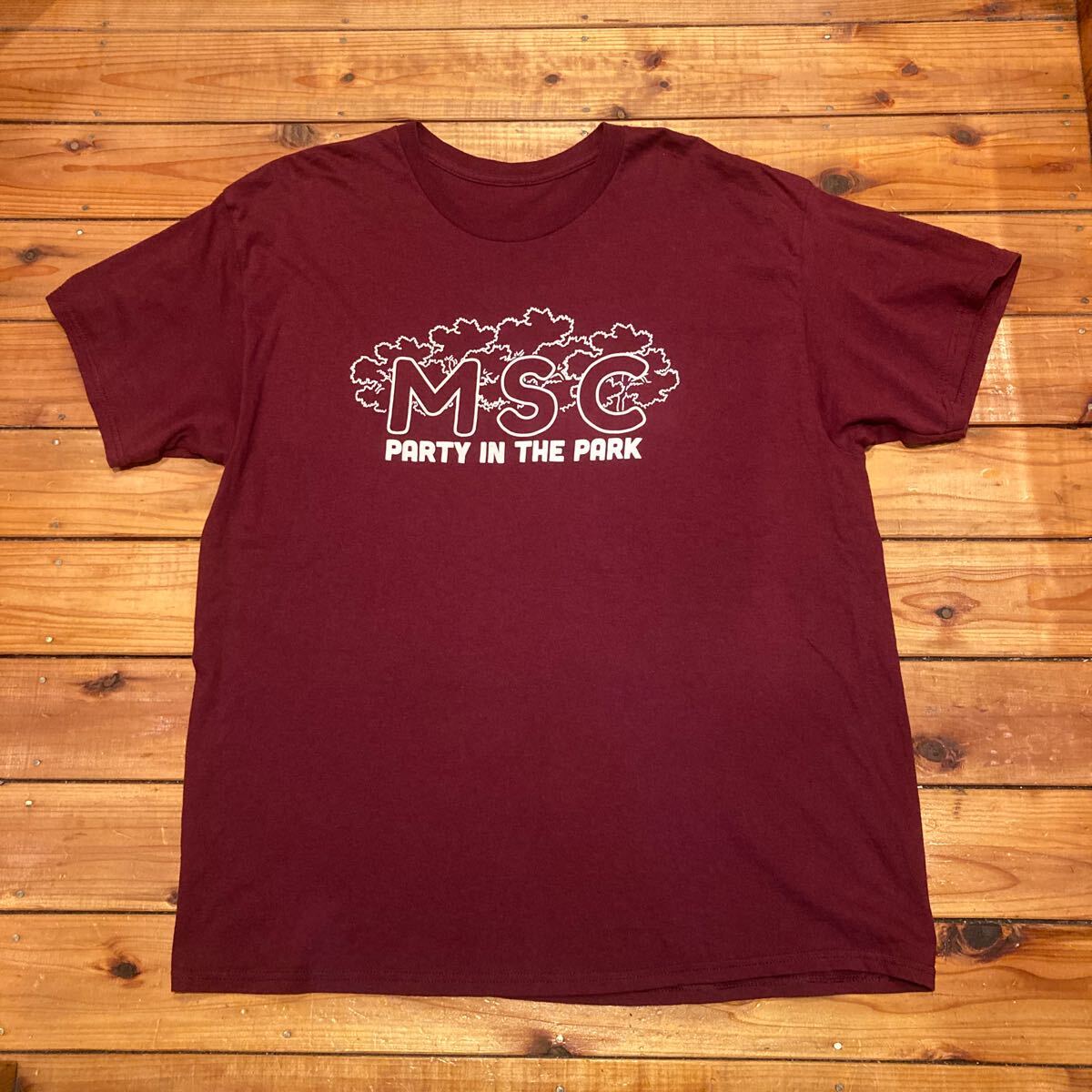 - プリントTシャツ 半袖Tシャツ バーガンディ系 アメリカ古着 USA古着