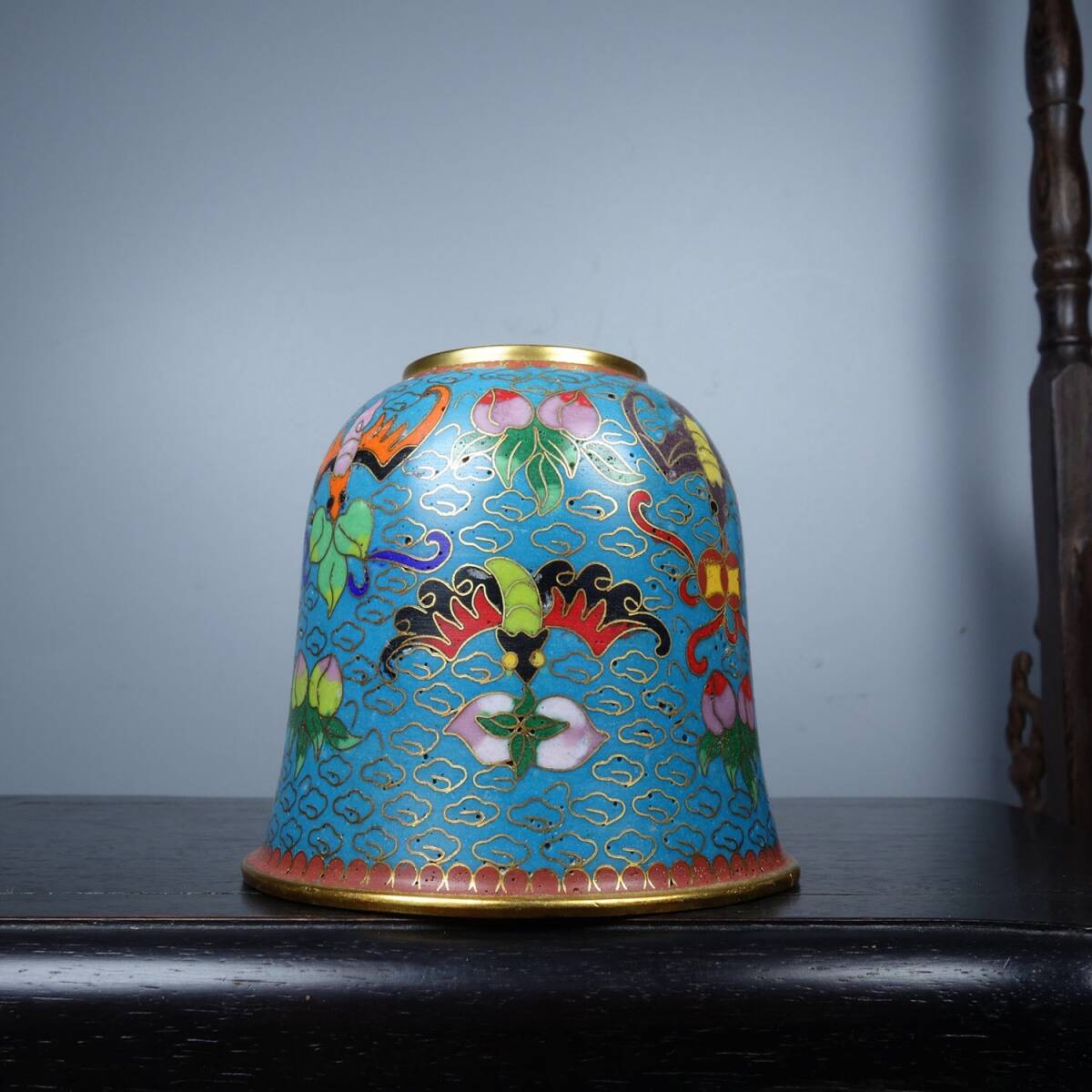 - ▽鴻▽ 銅製 景泰藍 琺瑯彩 福在眼前紋 水盂 置物 賞物 古賞物 中国古玩 中国古美術